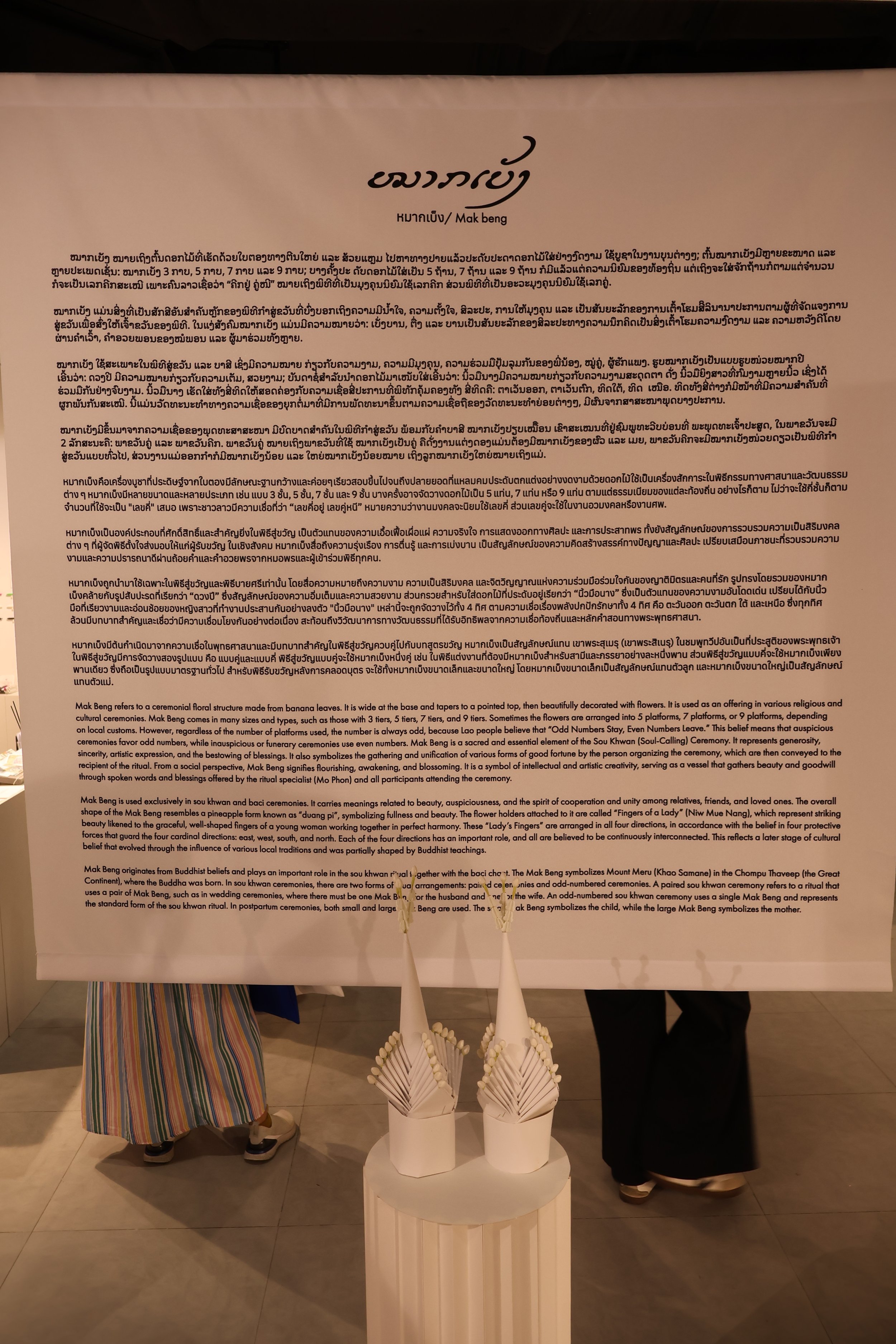 Located in the Siam Paragon Shopping Centre, the XYZ ART and Cultural Centre’s Khuan exhibition will focus on the research of Ms. Noksalika Phommavanh and the contemporary installations of Mr. Tomi Sithammarath. This exhibition invites visitors to experience Khuan beyond ritual. The space is further enriched by community-crafted blessing messages—words of care, memory, and intention—delicately designed by Lao artists Mr. Kaiyasith Sirivongsaand Mr. Reming Vongphachanh.